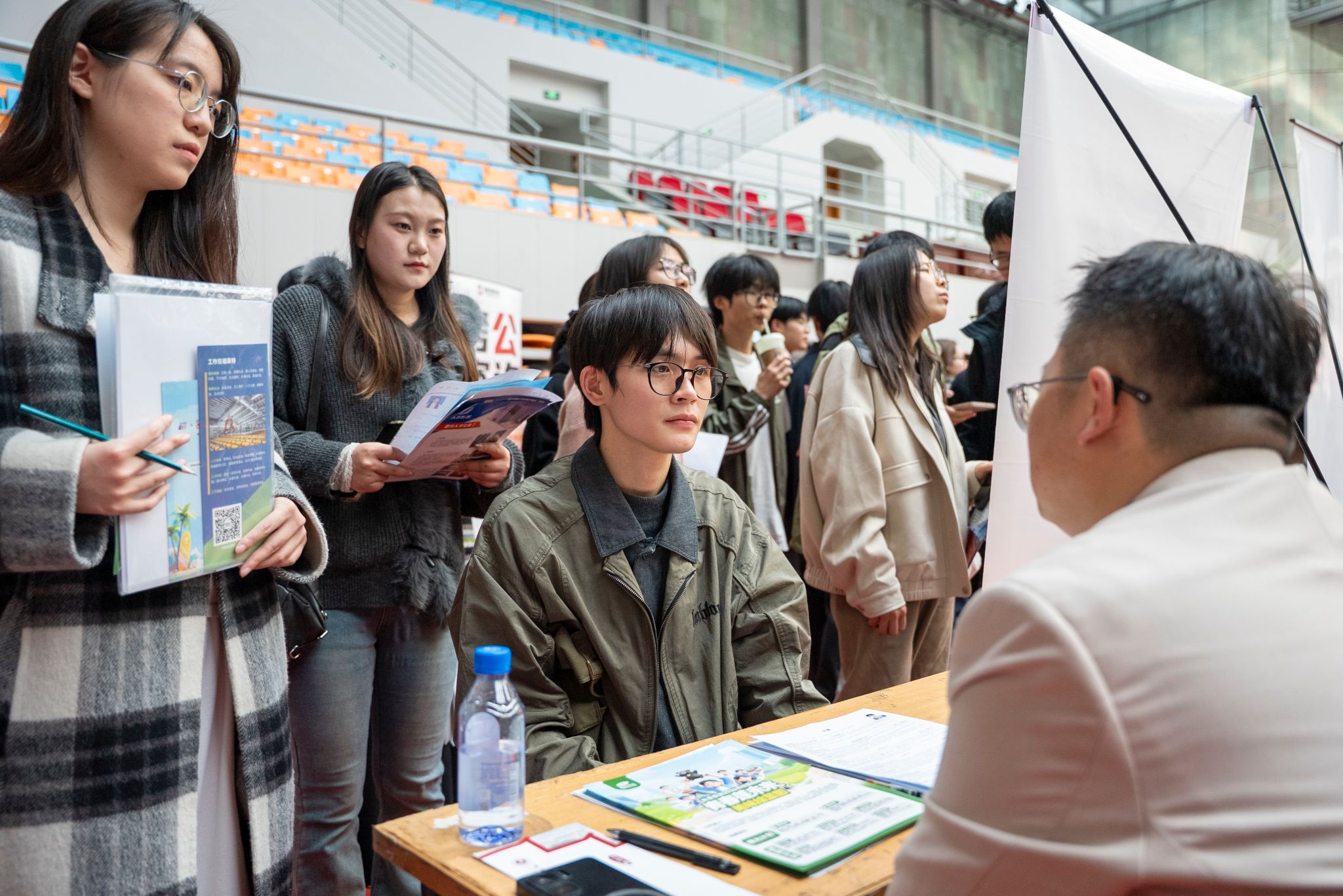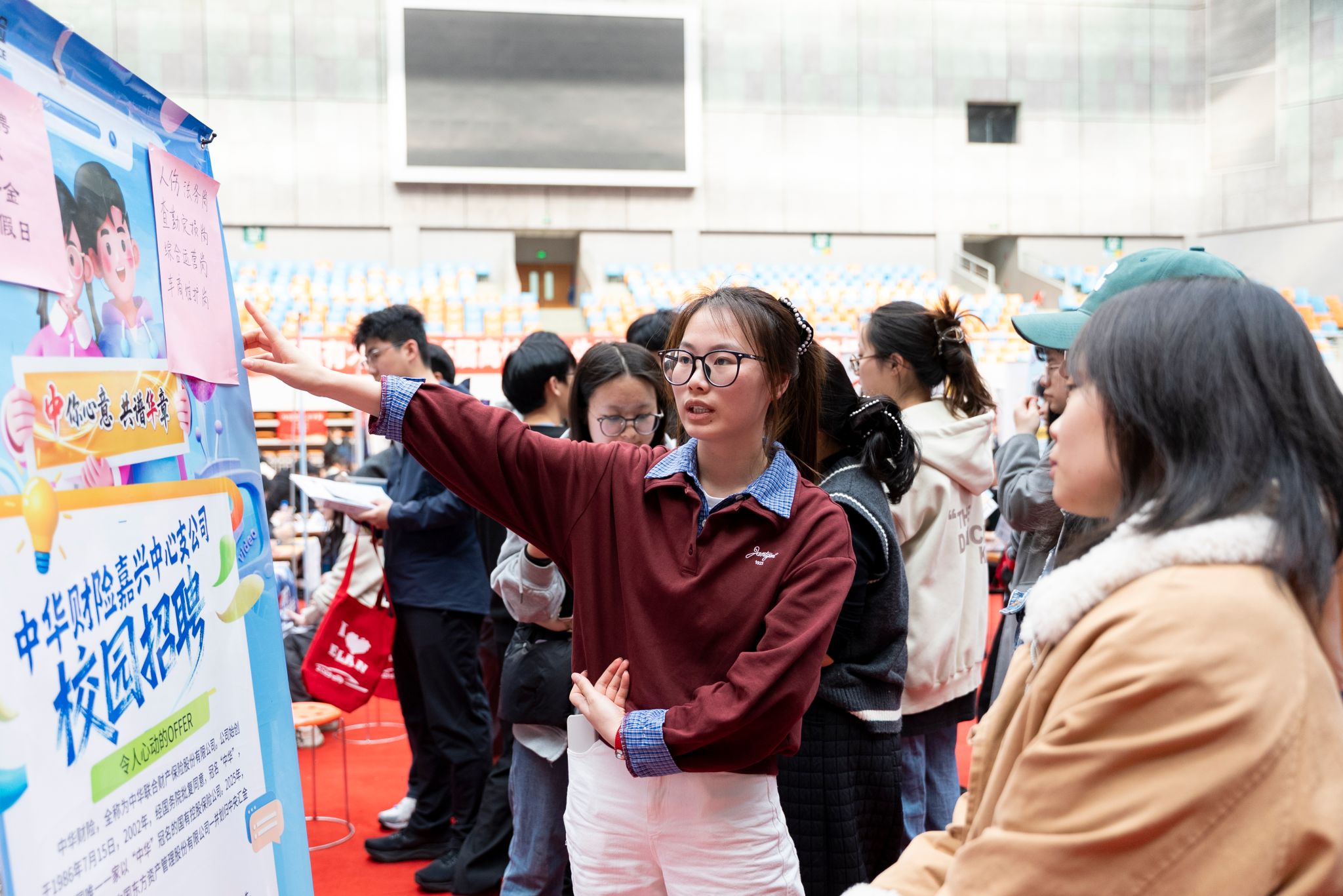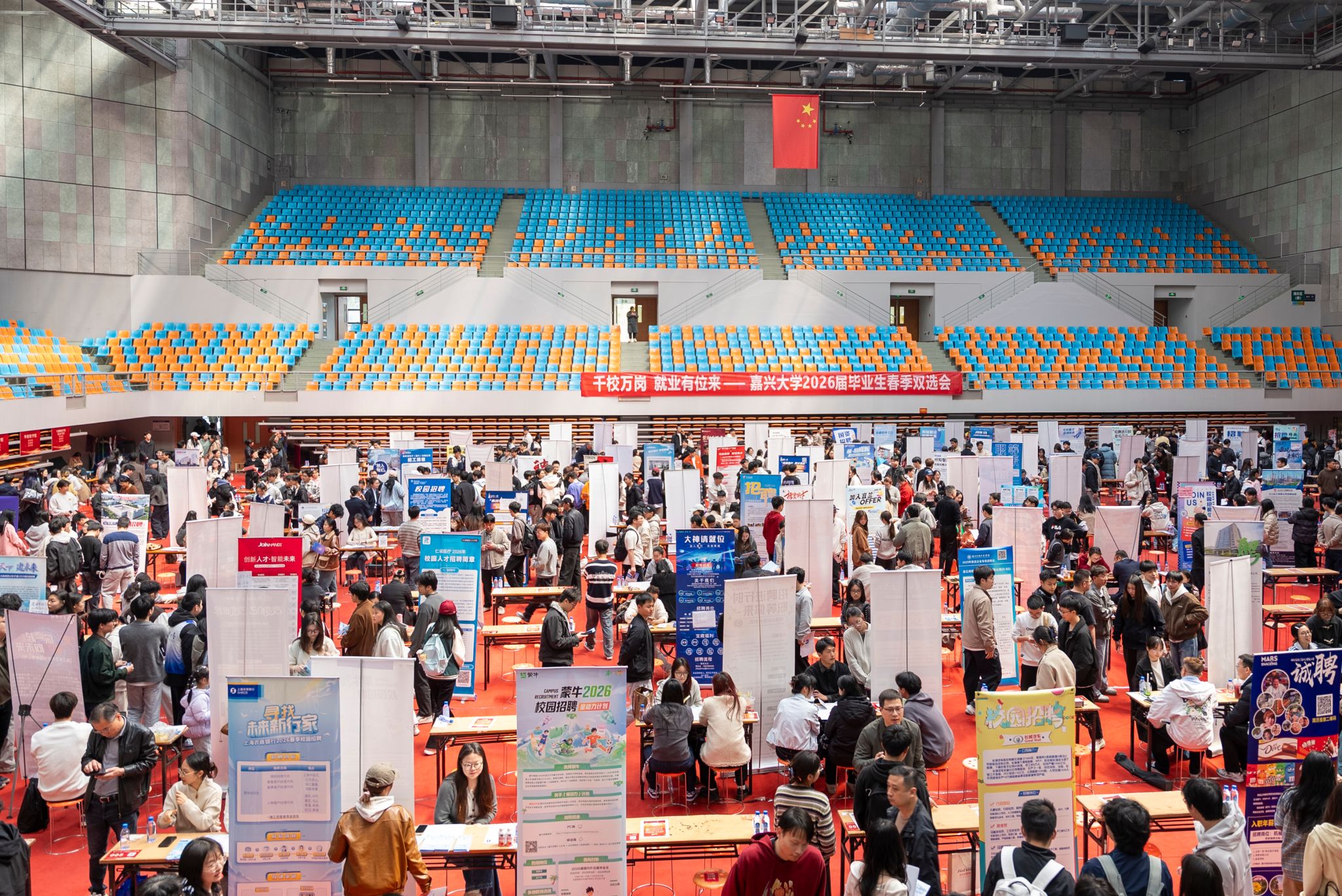 3月28日,“浙里有才”2026届高校毕业生系列专场双选会(嘉兴专场)在我校梁林校区体育馆举办,本次活动是我校春学期首场大型线下省级双选会。